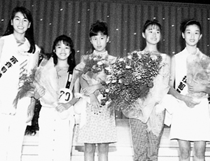 第7回の受賞者。左から2番目の小さい子が、上戸彩。想定外の受賞枠数増加だったため、受賞者用のタスキが足りず、上戸にはなし。